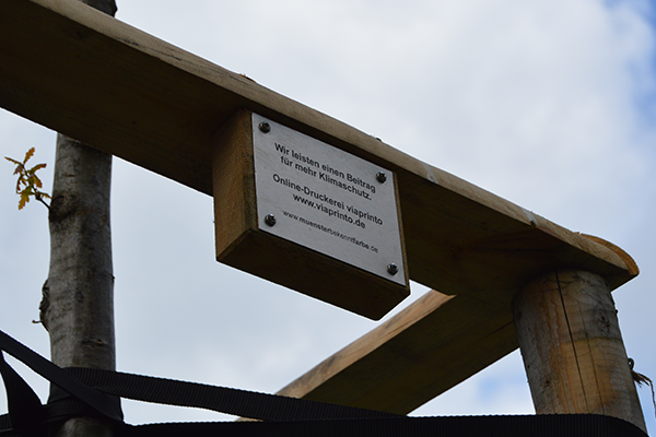 Abgerundet werden die Klimaschutzwochen von zwei Baumpatenschaften mitten in Münster, die wir übernehmen: Eine Linde und eine Traubeneiche treiben nun seit heute unter unserem Siegel ihre Wurzeln in die Münsteraner Erde. „Die beiden Bäume im Stadtgebiet zu pflanzen, ist für uns als Online-Druckerei aus zweierlei Sicht ein schönes Symbol. Zum einen wirken die Bäume positiv auf unser Klima und flankieren damit unsere Klimaschutzwochen, zum anderen geben wir der Natur wieder wichtige Rohstoffe zurück, die wir für die Produktion unserer vielfältigen Papiere und Produkte verwenden, die die Emotionen unserer Kunden wecken“, freut sich viaprinto-Geschäftsführer Frank Morjan.