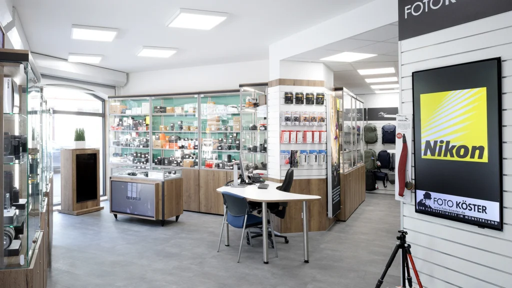 Seit vielen Jahren darf viaprinto Foto Kösters Werbemaßnahmen flankieren: „Wir drucken fast alles bei viaprinto. Die Verbindung begann aber schon mit CEWE Color“, erinnert sich Effing. Seit mehr als 90 Jahren kennt man die Kösters bereits als Foto-Experten im Münsterland. Auch ihr Stern ging einst, wie der von CEWE, zu dessen Gruppe viaprinto gehört, im Drogeriehandel auf. Inzwischen ist das Familienunternehmen zur festen Adresse für Berufsfotografen, Hobbyfotografen als auch semiprofessionelle Fotokünstler geworden. In Akademien, Online-Workshops, mit Fotowalks in der Natur oder Stadt, in Kamera-Reviews auf YouTube oder als Ansprechpartner zeigt das Team aus etwa 15 Mitarbeitenden ihre Expertise, Leidenschaft und Qualitätsanspruch für die Fotografie.