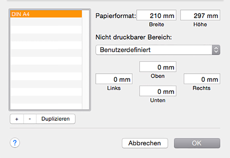 Verwenden einer eigenen PDF-Ausgabe unter Mac OSX